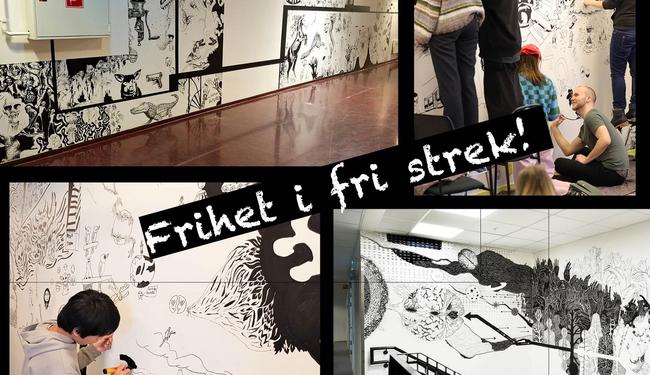 Har din skole en vegg som kan tegnes på? Kunst i Skolen inviterer klasser til å være med på tegnestafetten “Frihet i fri strek”!
