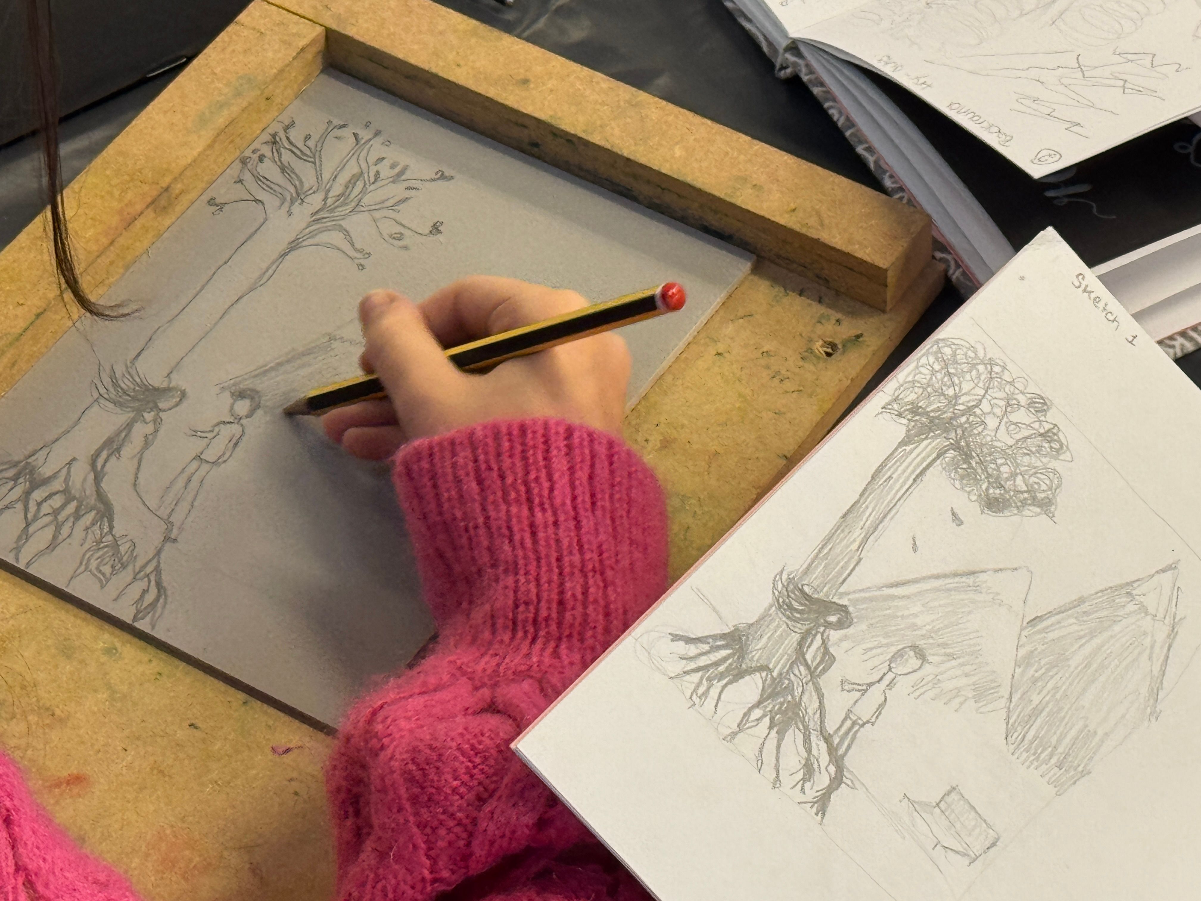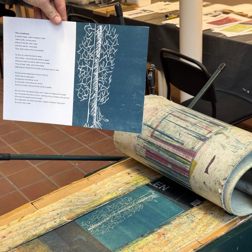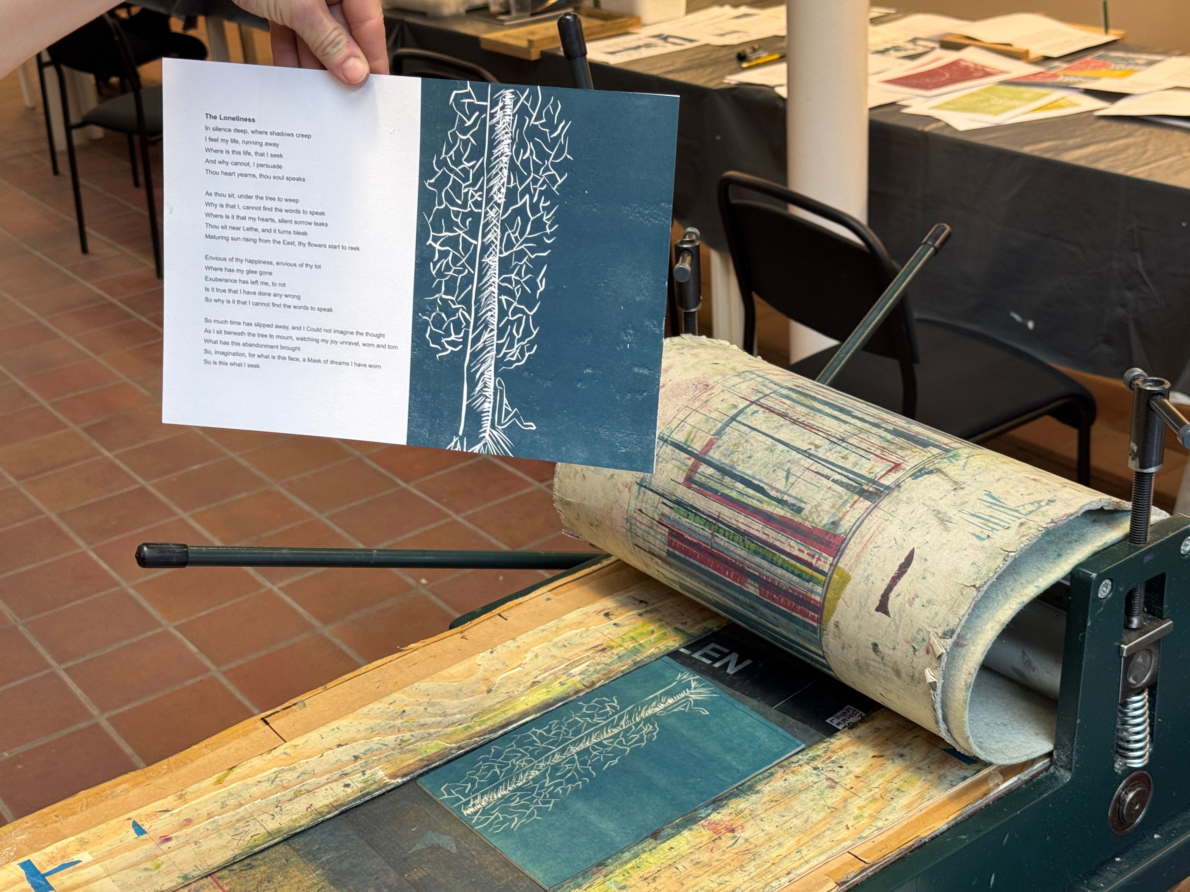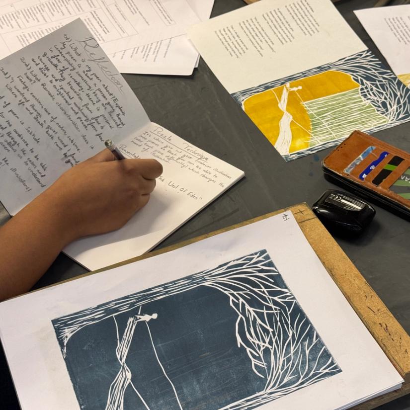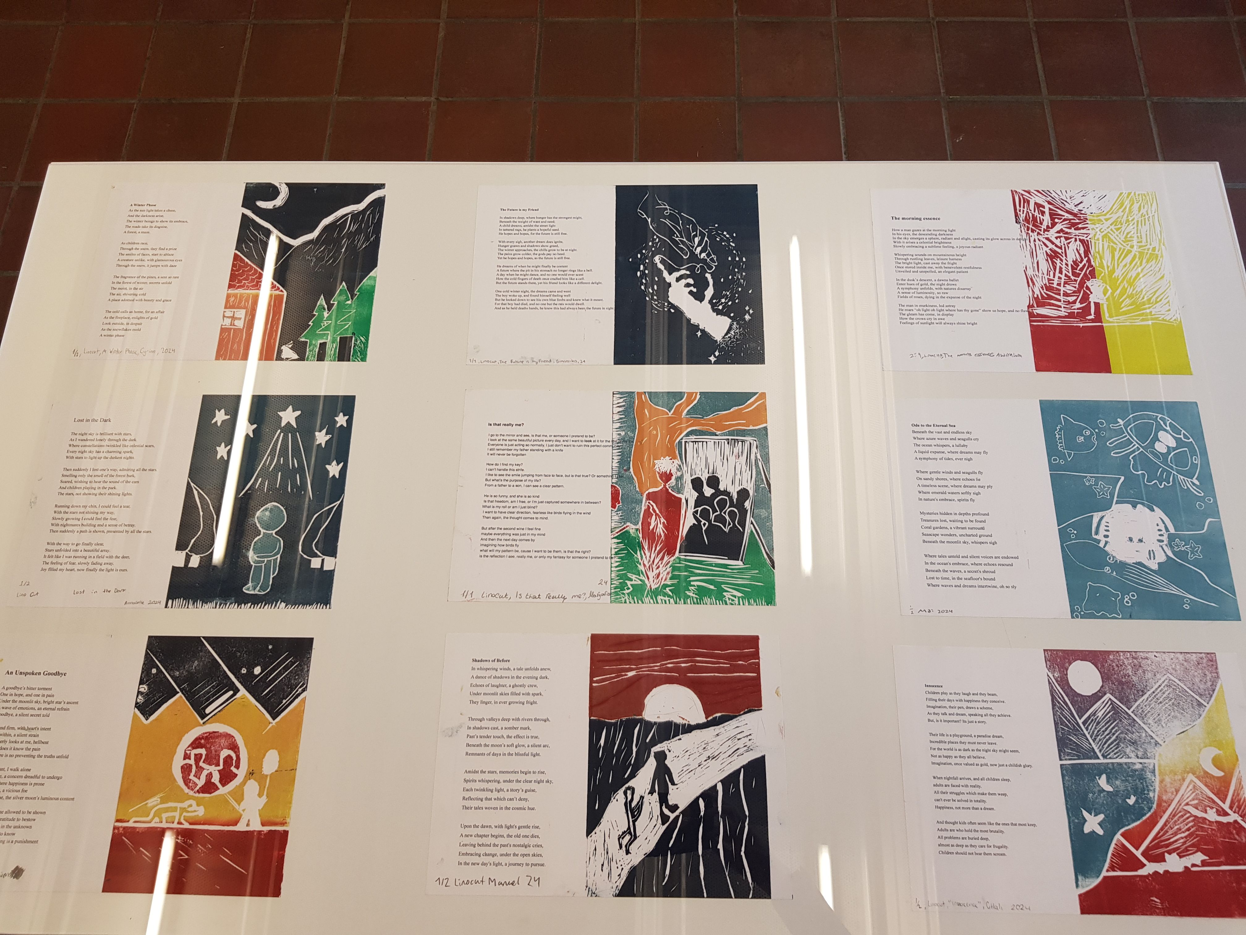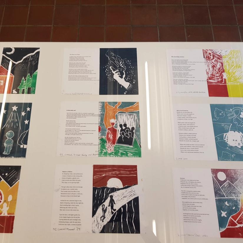 Grafikkverksted med Manglerud International Classes 9IC. Elevene illustrerte dikt de hadde skrevet selv, med inspirasjon fra romantikken.