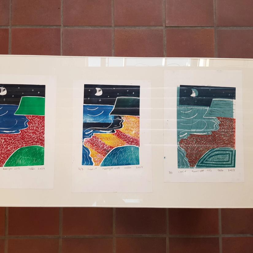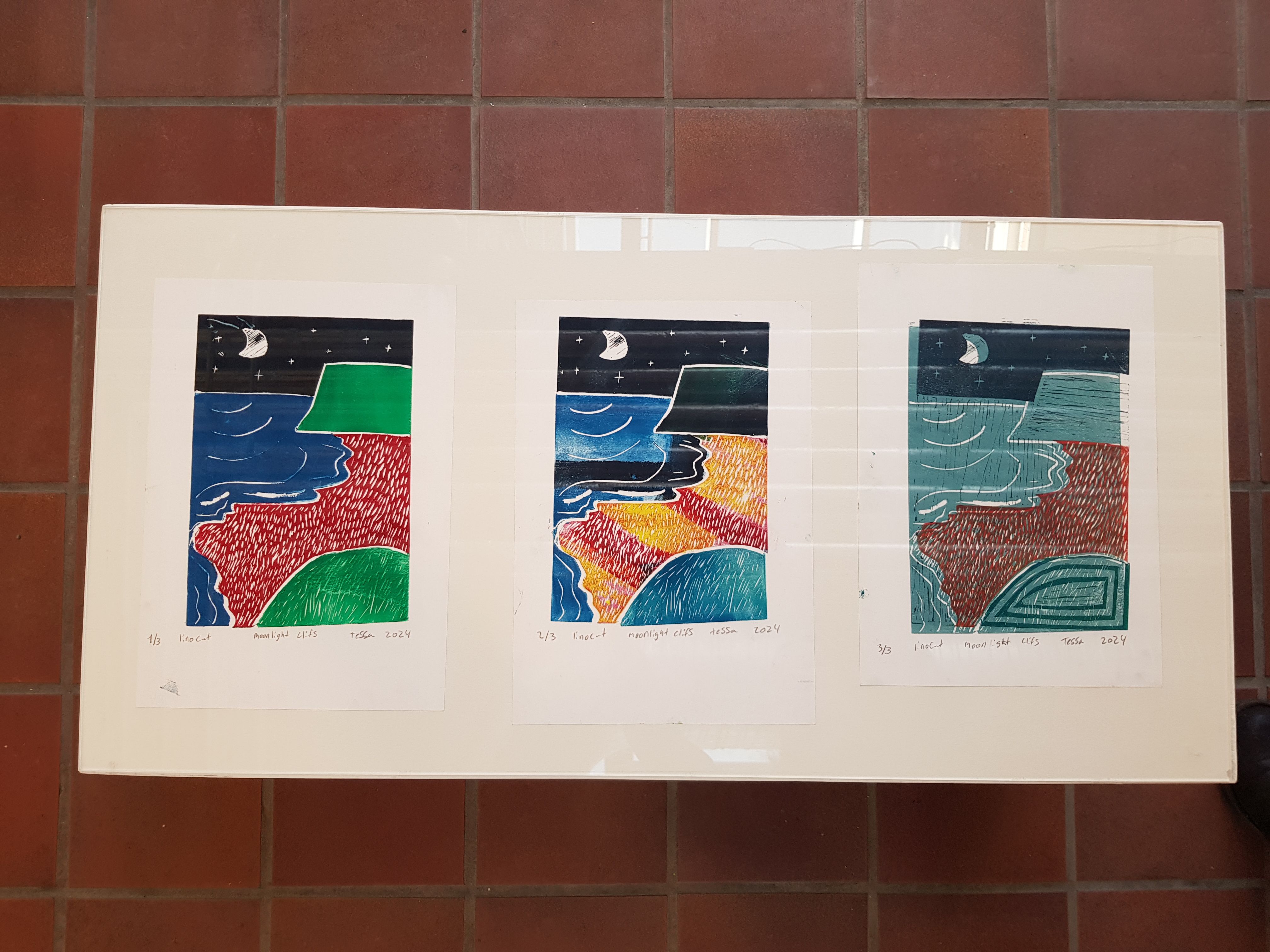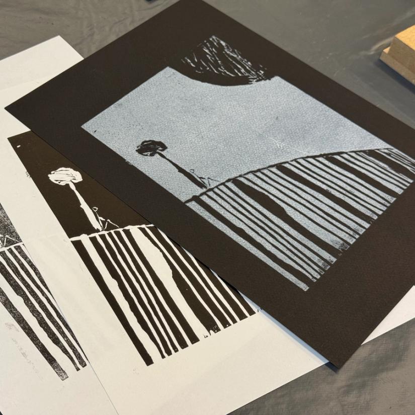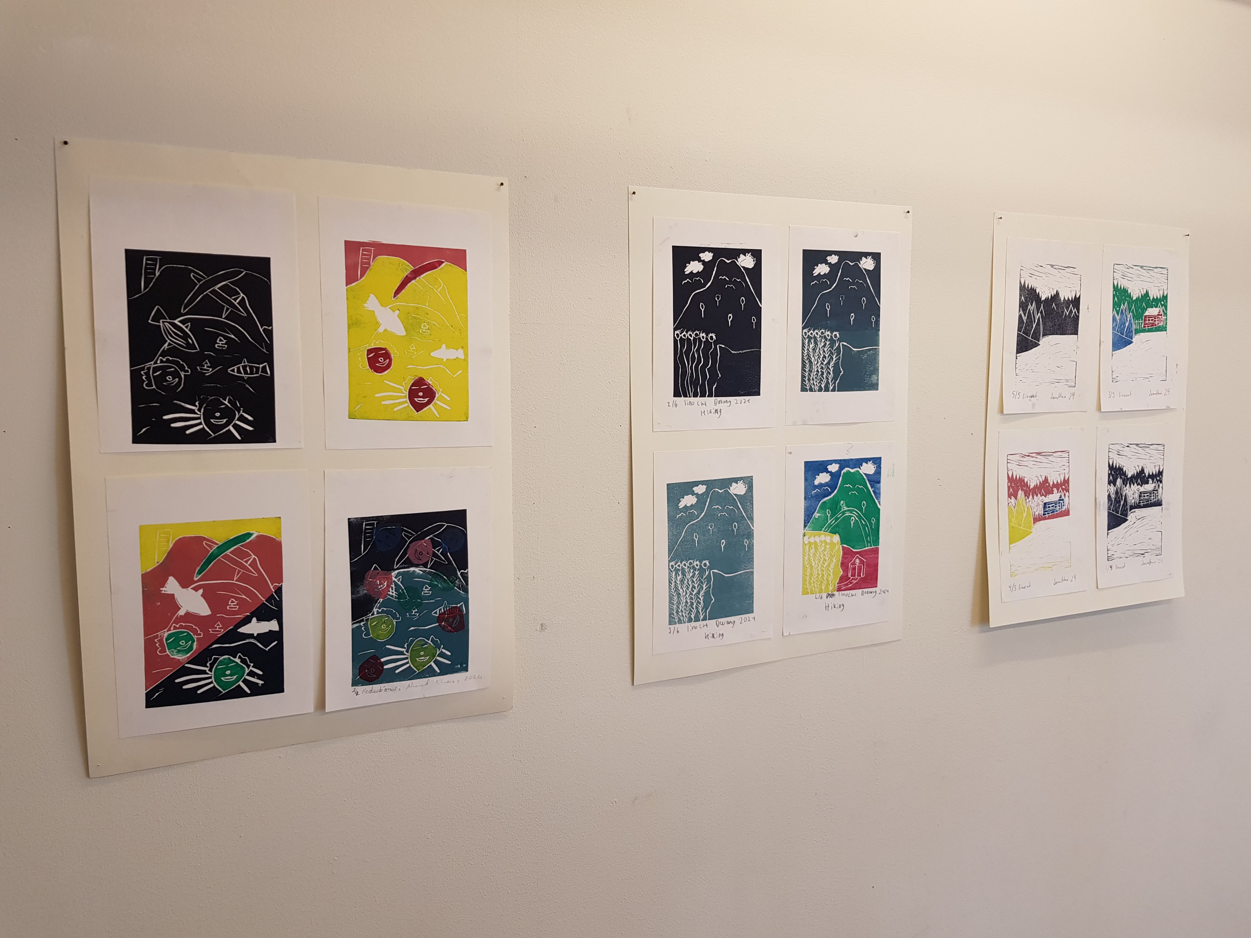 Våren 2024 tok vi i mot klasse 9IC og 10IC på Galleri Seilet. Elevene i 9IC skulle illustrere dikt de hadde skrevet selv, inspirert av romantikken. Elevene skisset først ideer til motivet, deretter jobbet de med teknikken linosnitt.