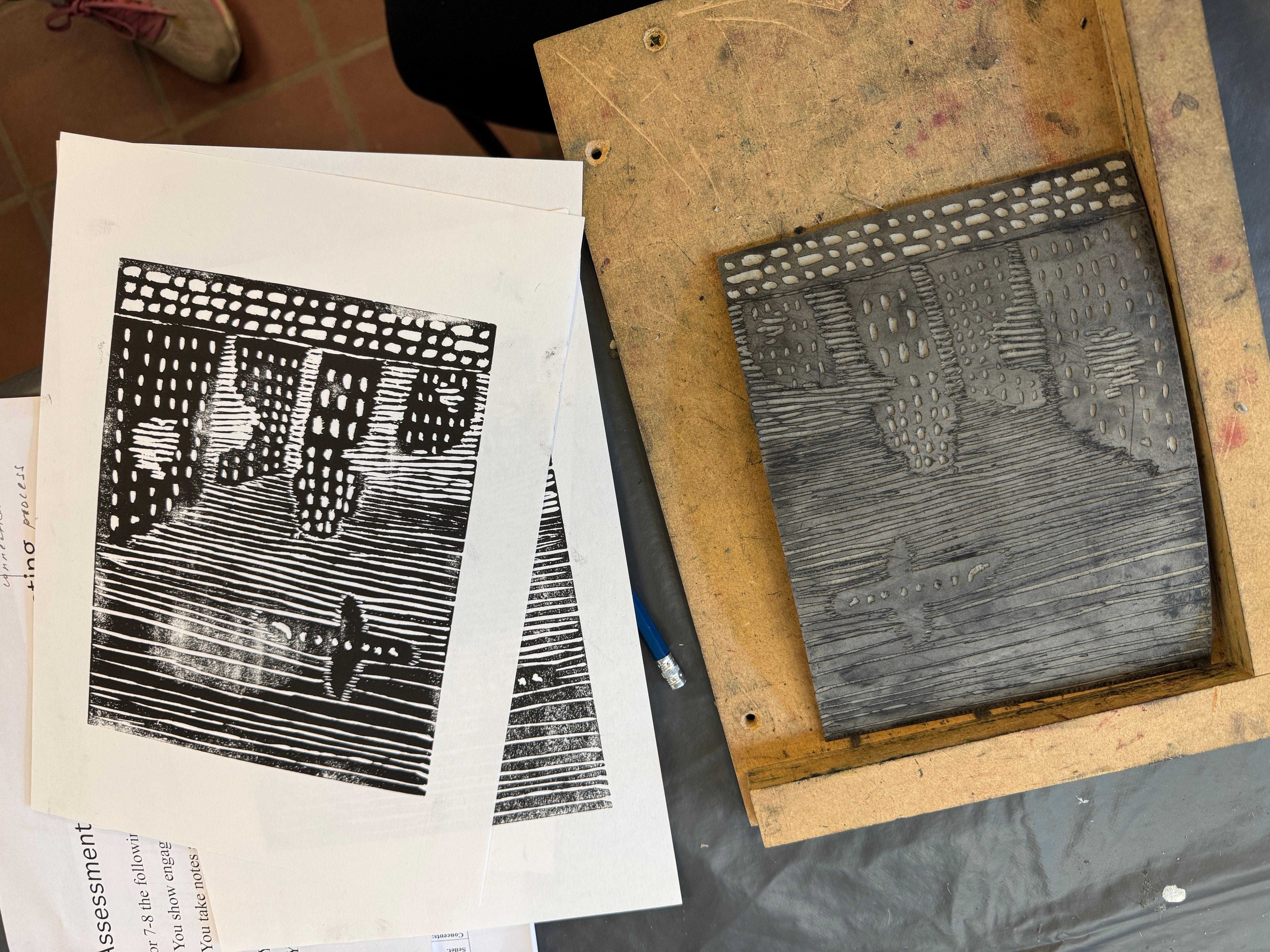 Våren 2024 startet vi et prosjekt med Manglerud International Classes og lærer Natalia Eriksen. Natalia tok kontakt etter å ha deltatt på et lærerkurs i tresnitt med Marianne på Galleri Seilet. Prosjektet fortsatte våren 2025 med nye klasser og elever.