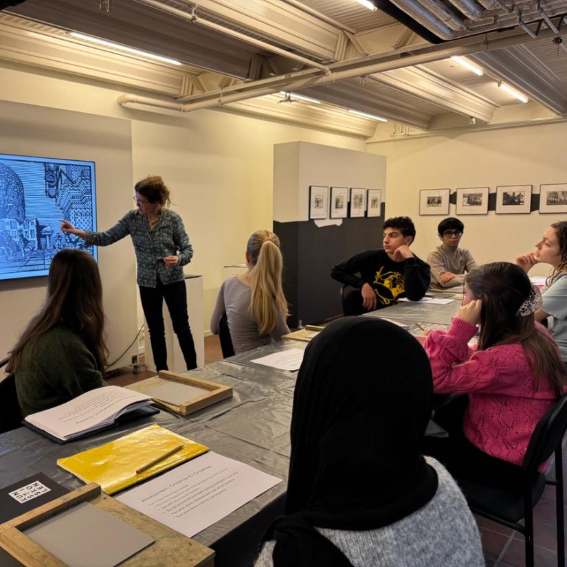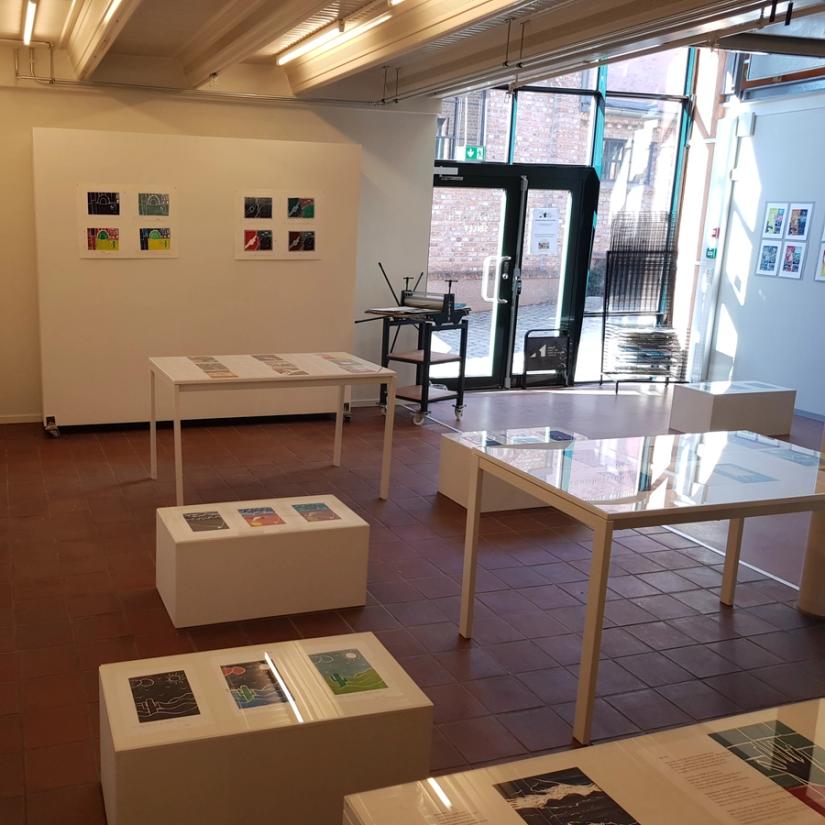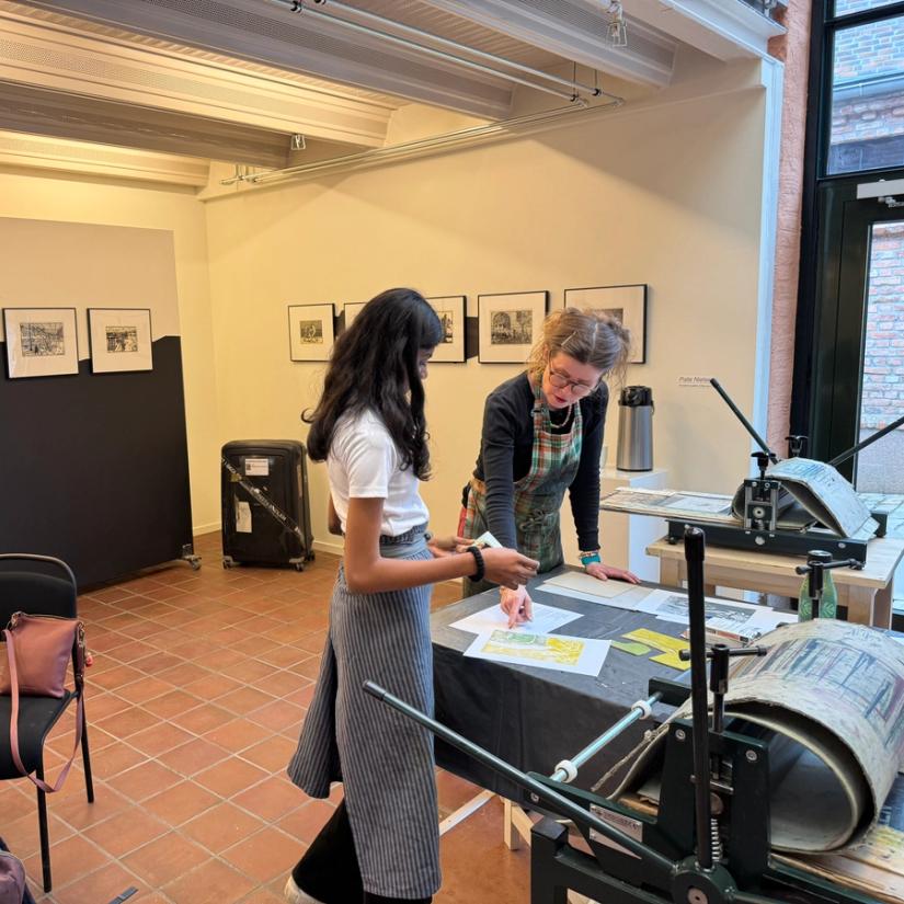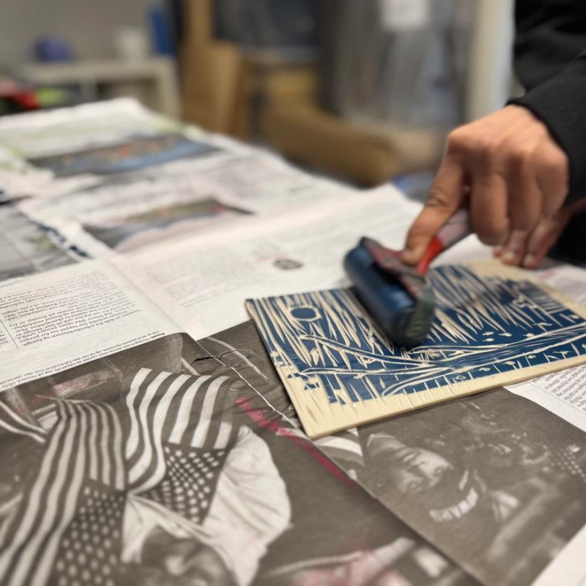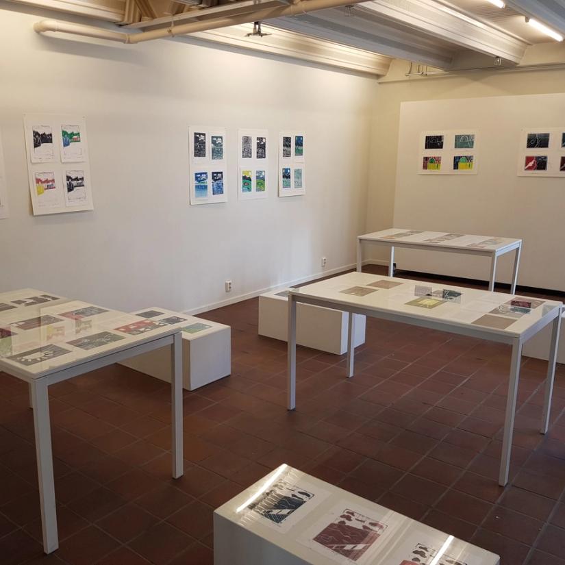 Marianne Karlsen veiledet dem i flere ulike teknikker innenfor høytrykk, blant annet puslespillteknikk, reduksjon og flerfargetrykk.